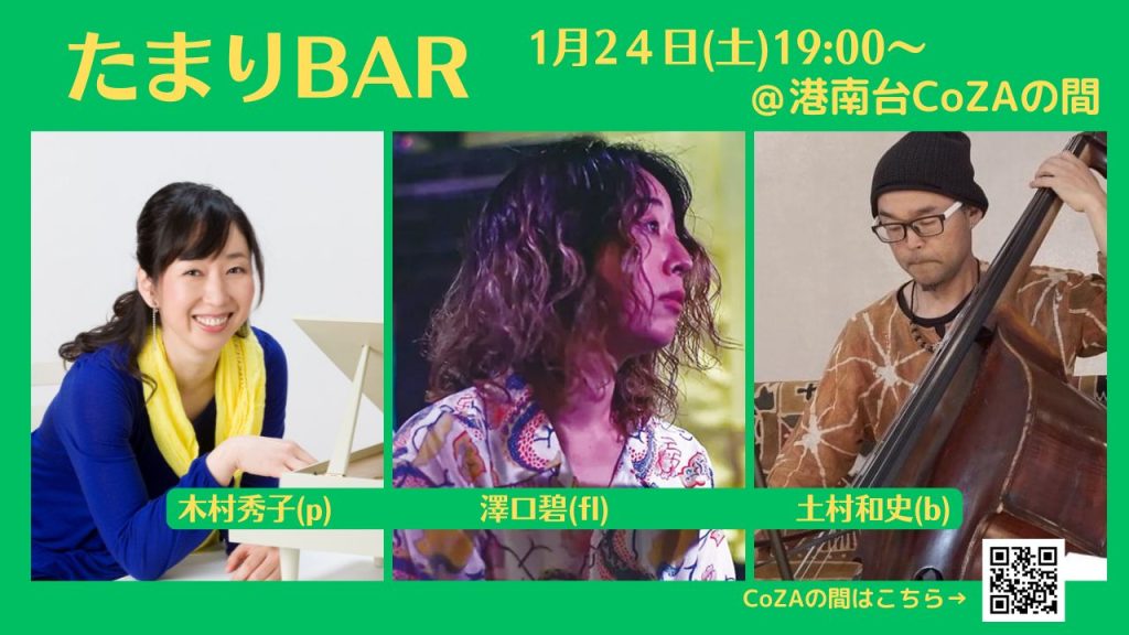 音楽を通した地域交流「たまりBAR」。今月は1月24日(土)19時からです。場所は港南台のギャラリーCoZAの間。 https://www.coza.co.jp