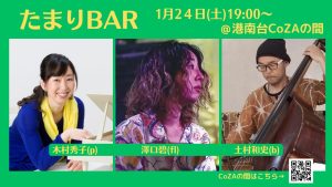 音楽を通した地域交流「たまりbar」今月は一年ぶりにフルート澤口碧さんをゲストにお招きしたバージョンでした。今年の幕開けに相応しい熱々の演奏で会場を沸かせてくれました。ご来場頂いた皆様ありがとうございました。